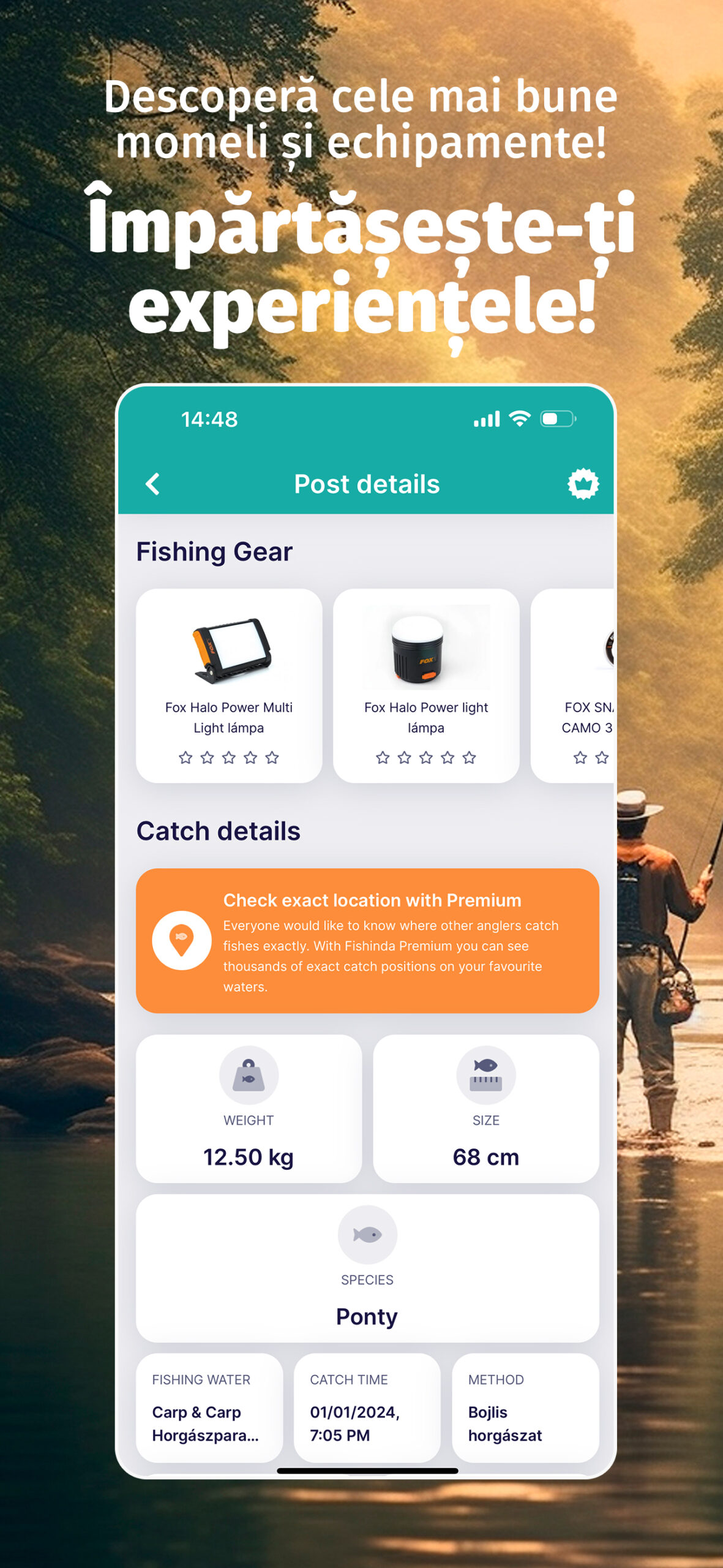 Toți vor să știe locul exact unde se prinde pește. Cu ajutorul Fishinda Premium ai parte de mii de exemple.